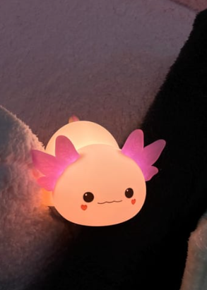 This axolotl night light is the cutest thing ever! It brightens my room!